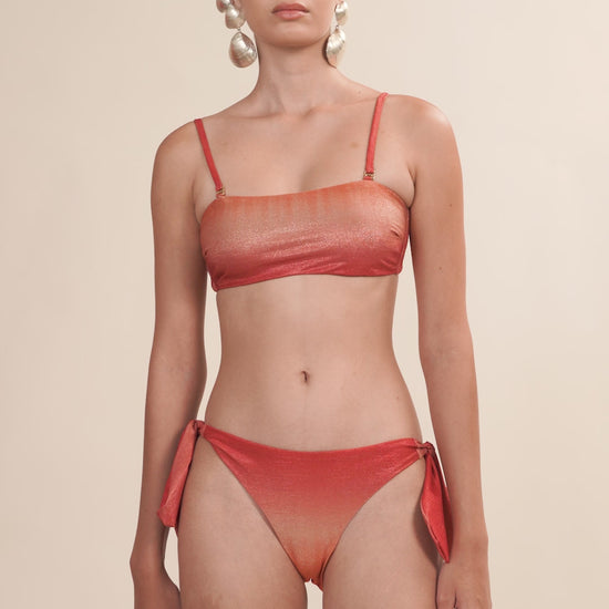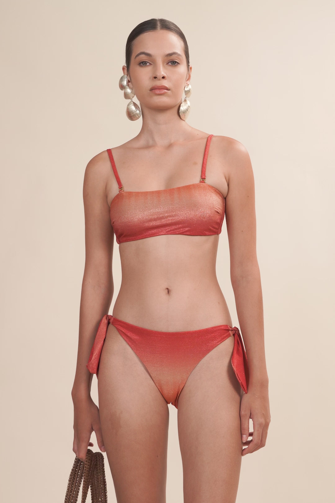 Panty indi con cobertura media y tiras ajustables en laterales que te brindara mejor confort y seguridad, esta pieza confeccionada en una suave tela tipo rib .Este top strapless moderno y cómodo, con tirantes y base ajustables, confeccionado en una base textil brillante, es perfecto para combinar con bikinis, pantalones cortos o faldas. su diseño versátil lo hace ideal tanto para la playa como para cualquier ocasión casual. ofrece estilo, frescura y comodidad en todo momento.