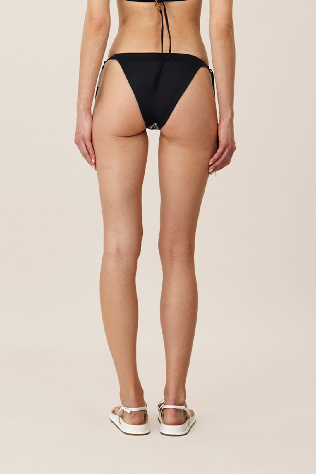 Panty donna con cobertura mínima, ajustable en laterales, esta pieza resaltada por detalles bordados en forma de coral inspirados en la forma y sutileza de los corales marinos, en esas formas fluidas que destacan en las profundidades del mar. una prenda muy versátil que puedes usar en esos días de verano, ofreciendo estilo y sofisticación a tus looks.Composición y cuidados