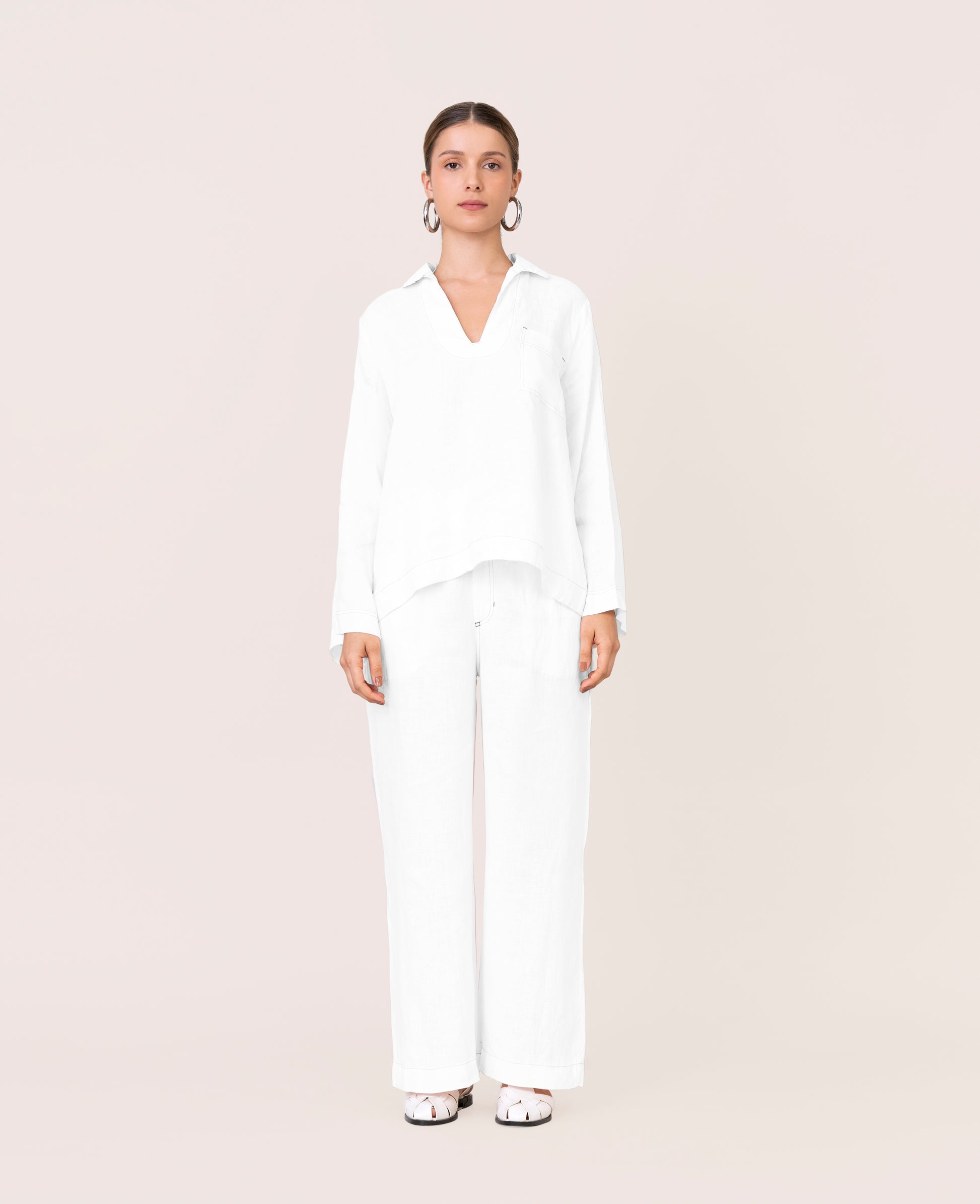Camisa manga larga confeccionada en lino 100% natural, ligera y cómoda, ideal para los días de verano o cualquier ocasión. Su diseño atemporal y versátil la convierte en una prenda esencial e imprescindible en cualquier guardarropa. Pensada para una mujer que valora la tradición, sin dejar de lado un estilo propio, fresco y siempre vigente.