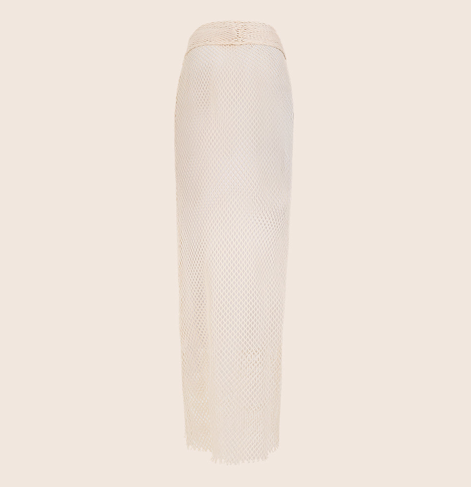 Falda larga en malla en color crudo, que combina movimiento, frescura y elegancia, cintura ajusteble para brindarte un fit perfecto. Su diseño versátil y confortable te hará sentir auténtica y sofisticada, perfecta para acompañarte con estilo en tus días de verano.