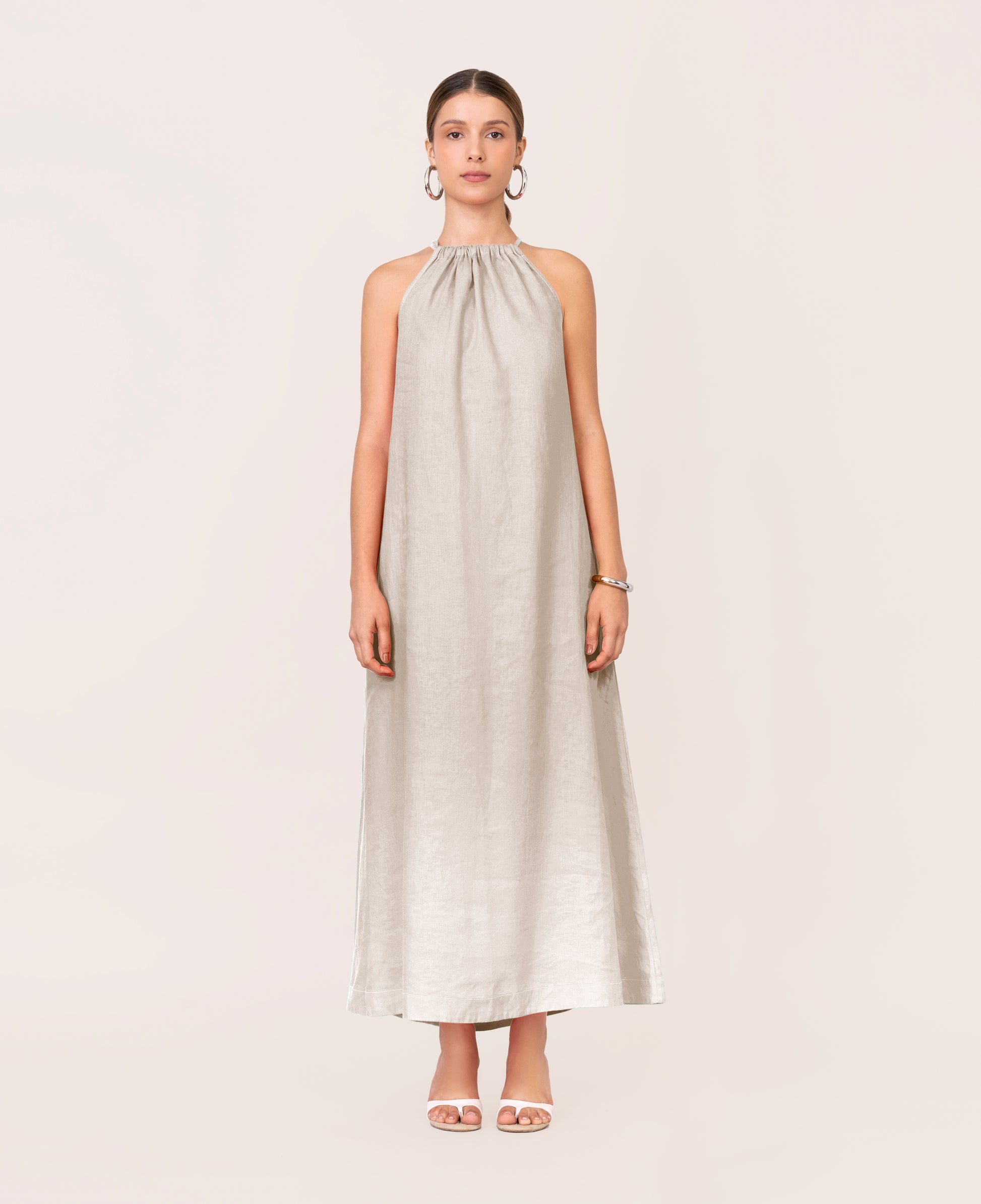 Vestido largo Mae, confeccionado en lino 100% natural, un básico imprescindible con elegancia natural. Su diseño atemporal y versátil lo convierte en la elección perfecta para múltiples ocasiones. Pensado para una mujer que valora la tradición, sin renunciar a un estilo propio, sobrio y siempre vigente.