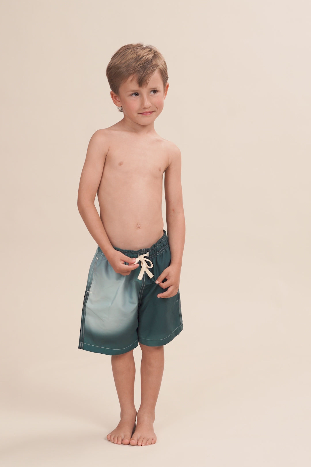 Pantaloneta de niño, confeccionada en una base textil eco con tecnología de secado rápido y control de temperatura para mayor comodidad, pensada en la comodidad, diversión y protección de los niños en la playa. con un diseño fresco y moderno, cintura elástica para un ajuste perfecto.Composición y cuidados