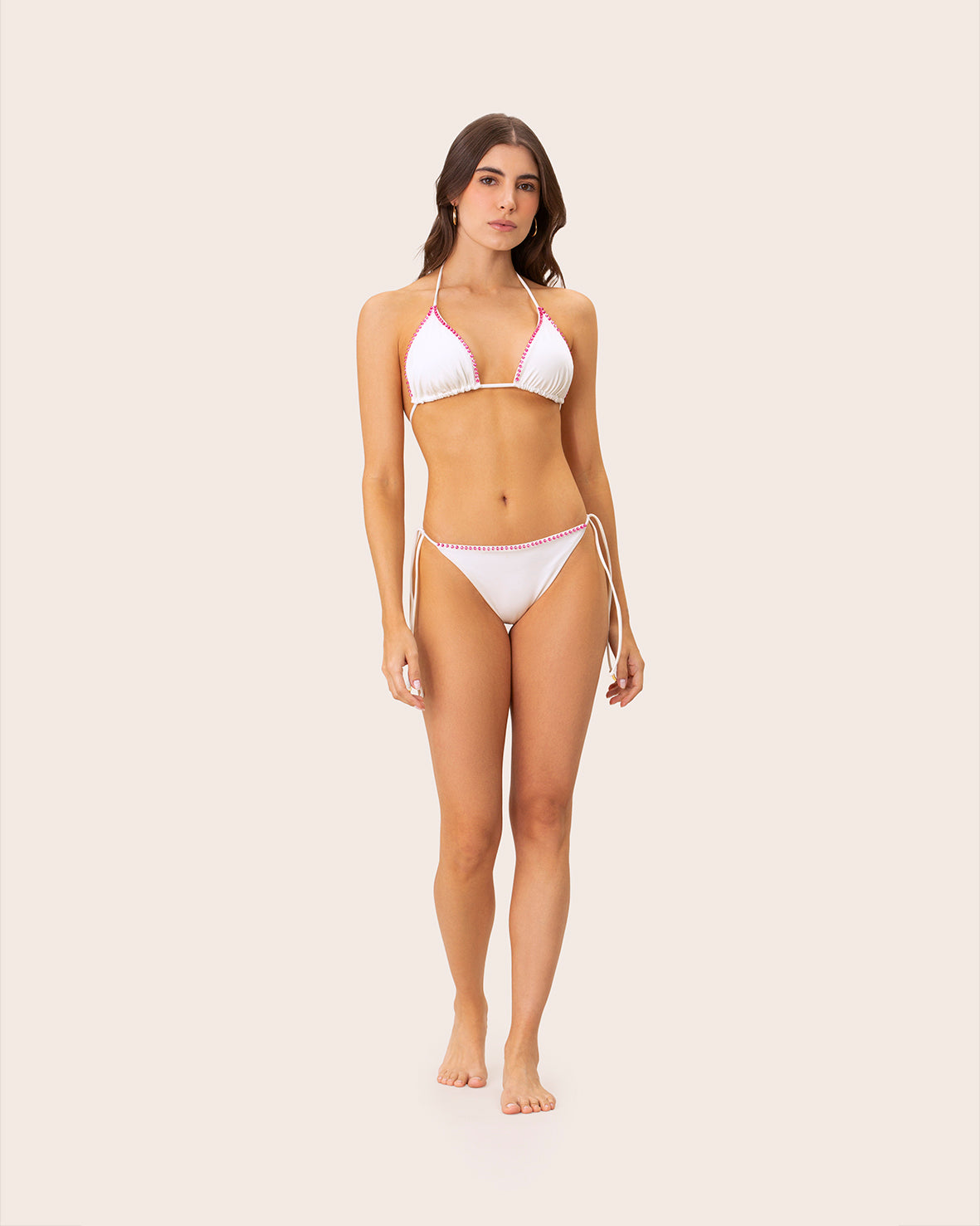 Panty de bronceo en color marfil sólido, confeccionado en una tela satinada suave y ligera que ofrece una sensación delicada sobre la piel. Detalle artesanal en el centro del frente, que aporta un toque único y sofisticado. Su corte cómodo y favorecedor lo convierte en la prenda ideal para broncearte y disfrutar de los días de verano. Con un estilo minimalista que realza tu belleza natural bajo el sol, combina elegancia y confort en cada momento.