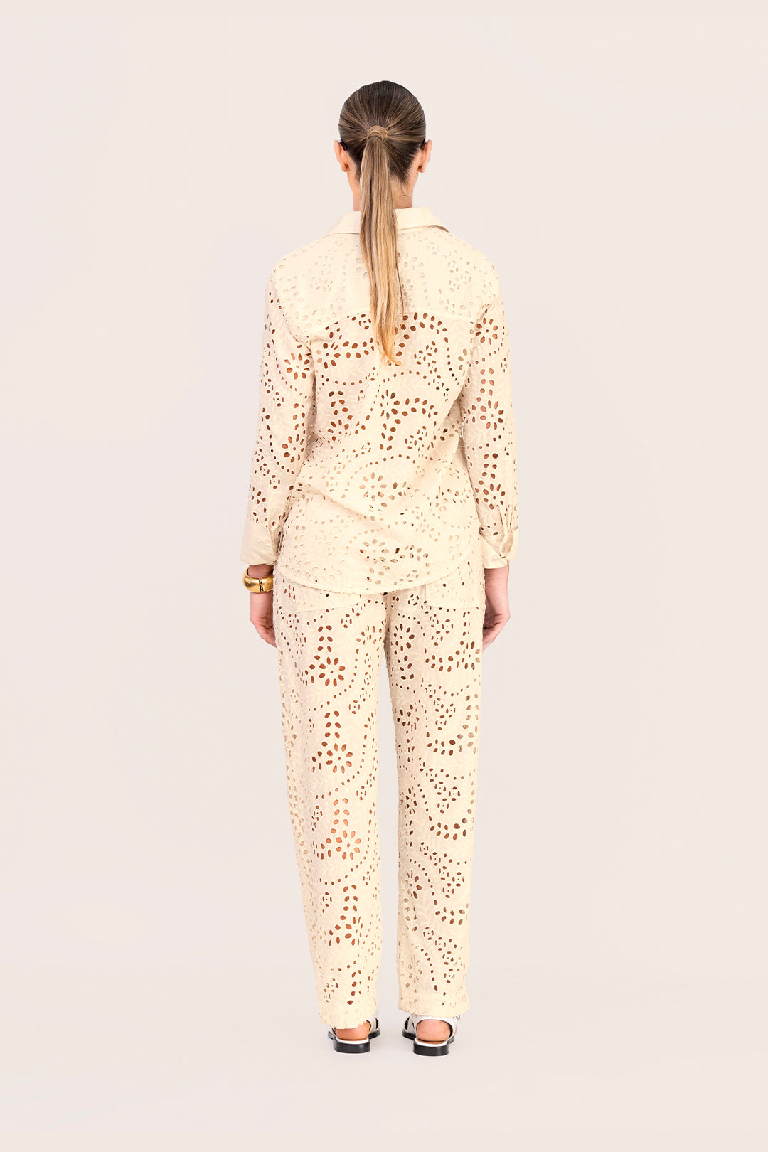 Camisa anny de manga larga con botonadura al frente, un infaltable en tu clóset. confeccionada en un delicado ojalillo en tono rosa 100% algodón, es una prenda fresca, ligera y femenina, ideal para climas cálidos. su textura aporta un detalle sutil y sofisticado que eleva cualquier look, combinando lo clásico con un aire relajado y contemporáneo.Composición y cuidados