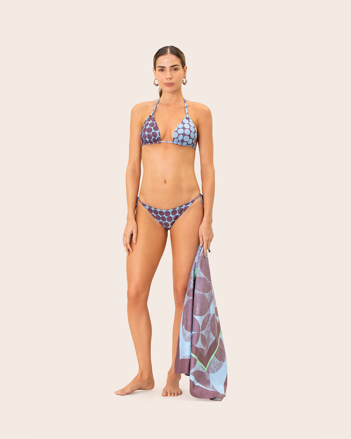 Toalla de playa confeccionada en una suave tela de microfibra estampada ecológica, diseñada para brindarte confort y practicidad en tus días junto al mar. Su material ligero, absorbente y de secado rápido la convierte en el accesorio ideal para acompañarte. Un diseño funcional y moderno que combina sostenibilidad, estilo y comodidad.