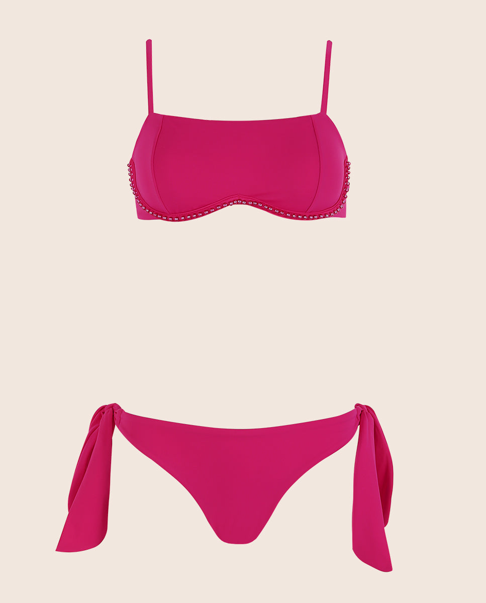 Nuestro Top tipo demi con varilla soporte, cargaderas y base ajustable está diseñado para realzar tu figura con un fit perfecto. Su estructura con varillas en la base de las copas y base ajustable ofrece un soporte firme pero cómodo, mientras que las cargaderas regulables se adaptan a tu cuerpo para brindarte máxima seguridad y confort durante todo el día. En la base del top, un delicado detalle artesanal tejido a mano en chaquirones aporta un toque único y sofisticado. Cada pieza es elaborada por artesanas expertas, incentivando el trabajo manual y llevando esta prenda a otro nivel de distinción y autenticidad. Esta pieza combina sofisticación y modernidad, pensada para la mujer que busca sentirse segura, elegante y auténtica en cada momento. Su diseño versátil se adapta a cualquier ocasión de uso bajo el sol, convirtiéndose en un básico imprescindible para tus días en la playa.